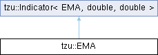 | Public Member Functions inherited from tzu::Indicator< EMA, double, double > | |
